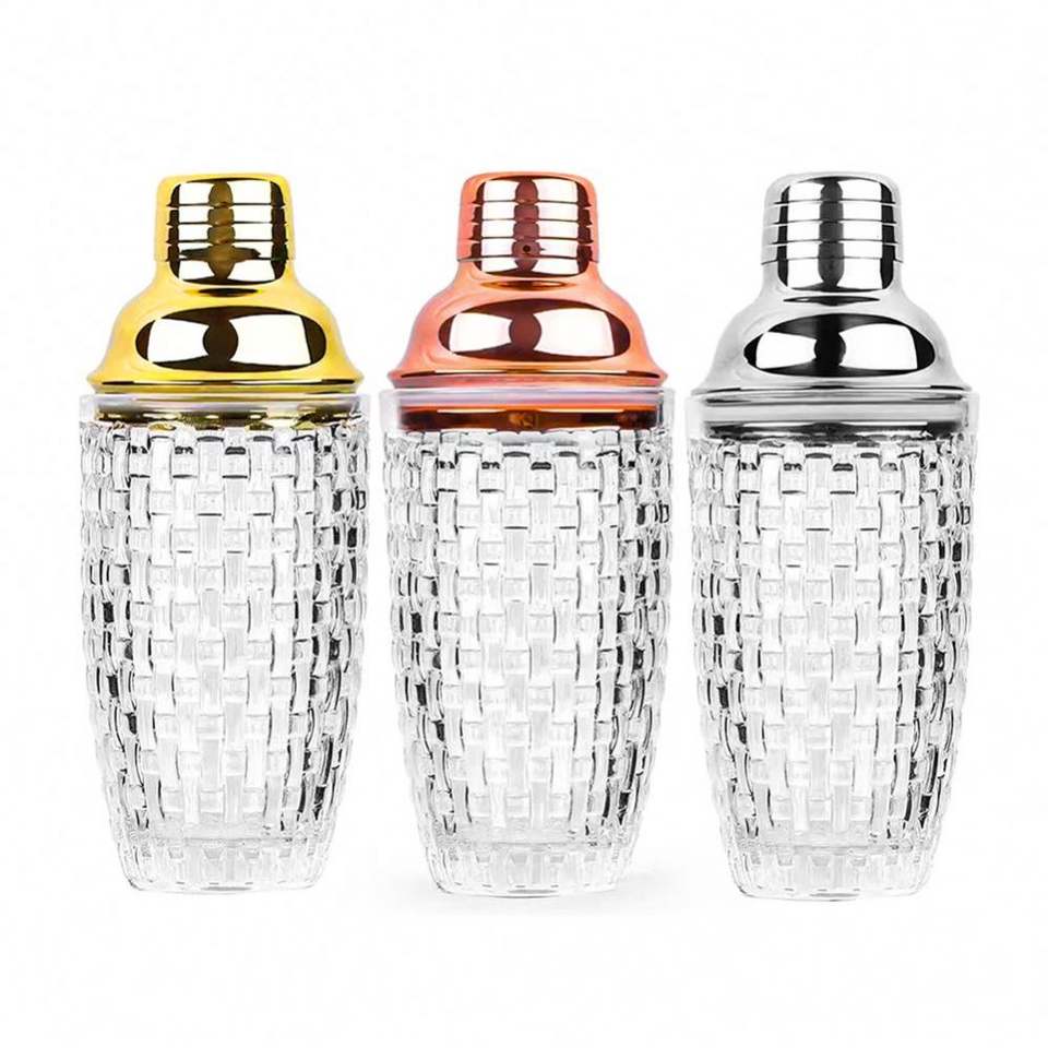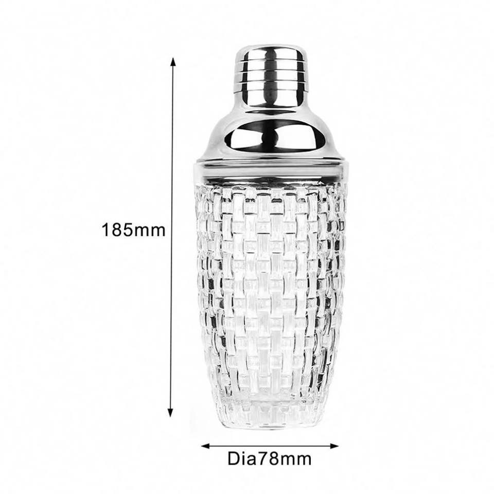 Shaker à cocktails en verre à motif quadrillé 380 ml, en acier inoxydable 18/8 durable avec passoire intégrée, outil de barman, shaker Martini Cobbler