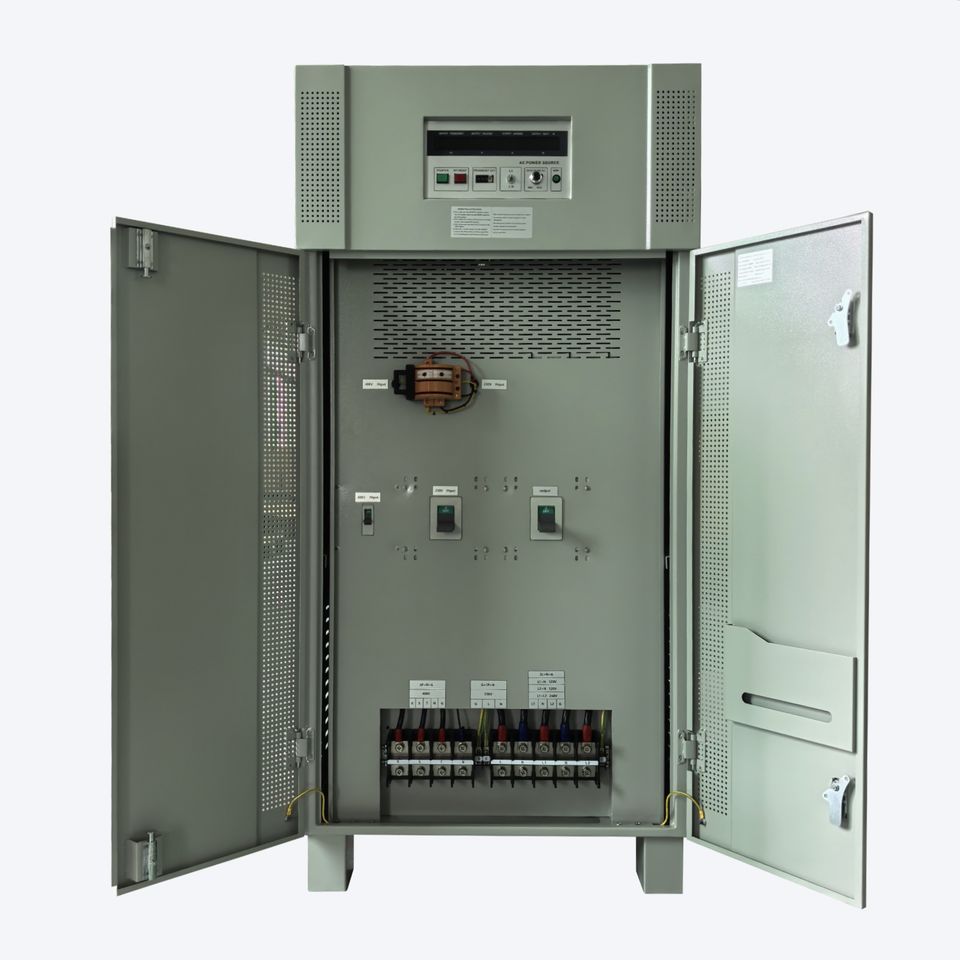 Générateur de simulation de réseau 150 kVA triphasé programmable à fréquence variable avec RS485 pour test de moteurs, chargeurs de VE et onduleurs photovoltaïques haute performance