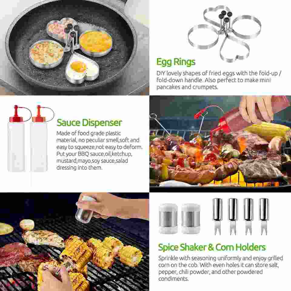 Nom du produit:Kit d'accessoires pour plancha 38 pièces : spatule pour plancha à dessus plat, outils de grillade