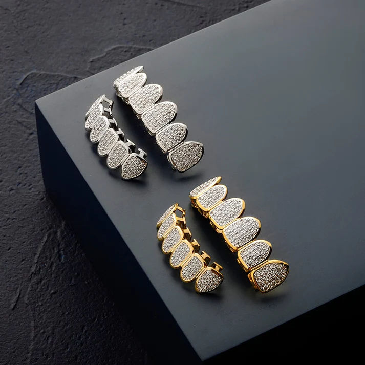 Grillz pour les dents Hip Hop bijoux or Grillz corps décoration laboratoire cultivé diamants bijoux dents laiton Zircon ensemble de bijoux