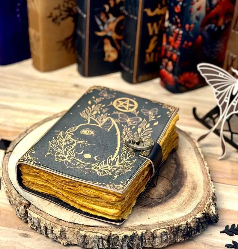Type:Grimoire Leather JournalCeltic Cat Leather Journal