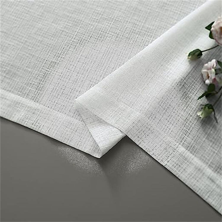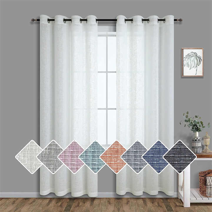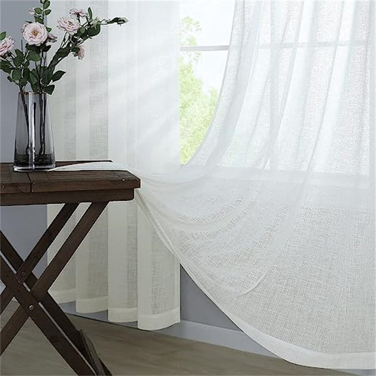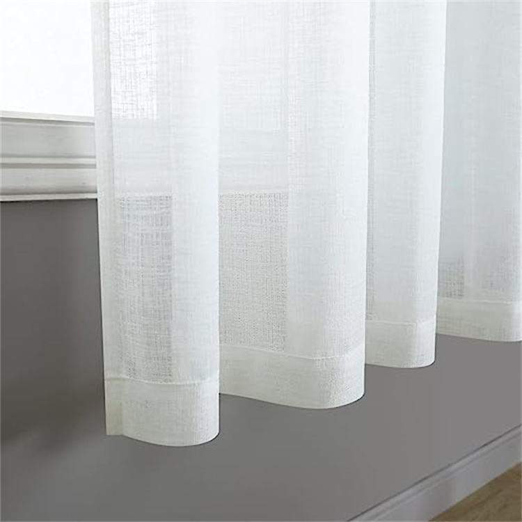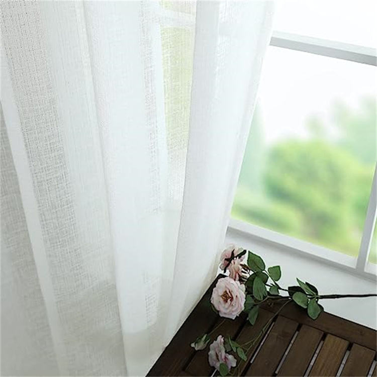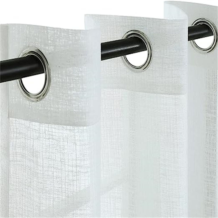 Oeillet Drapé Faux Lin Semi Sheer Lumière Filtrant Opaque Simple Rideaux De Sol Ferme Blanc Rideau pour Salon Chambre