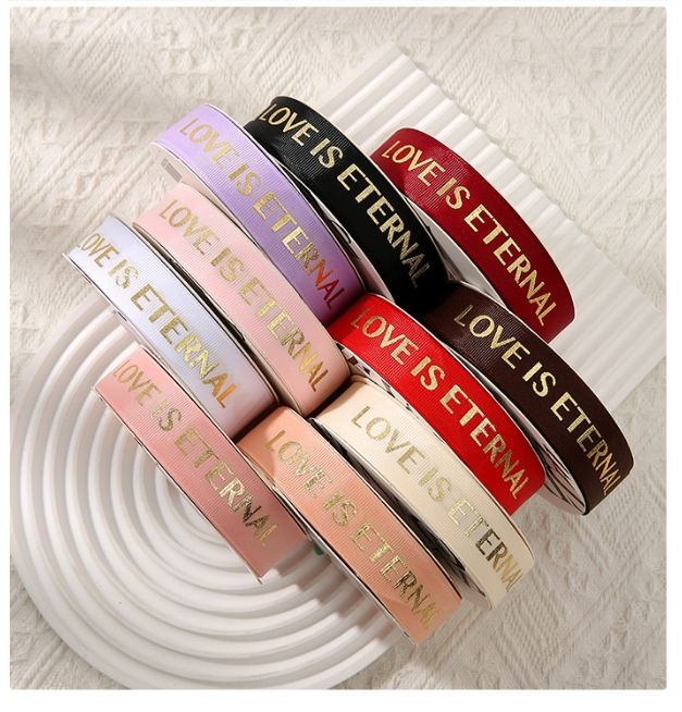 Ruban d'anniversaire imprimé en feuille gros-grain avec logo pour emballage de boîtes-cadeaux 22MM