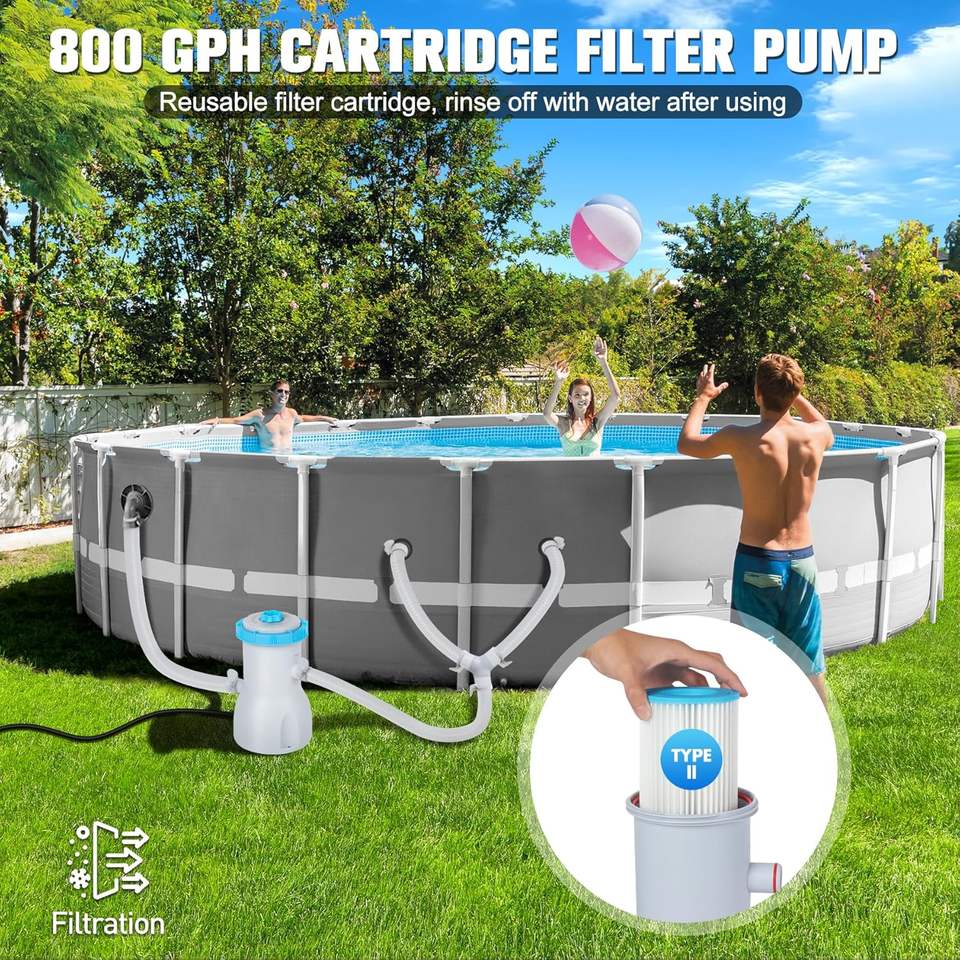 Pompe de filtration pour piscine hors sol | Économie d'énergie, double action, accélère le débit d'eau, capture les débris, améliore la clarté, capacité de 800 GPH, facile à utiliser