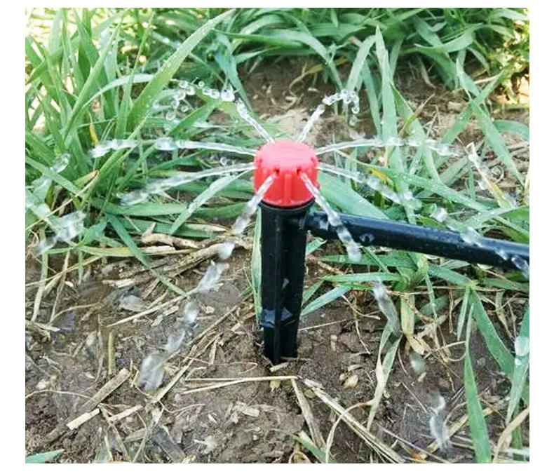 Goutteur réglable au sol de 13cm avec 8 trous et couleur rouge à 360 degrés, tige intégrée pour l'irrigation et l'arrosage