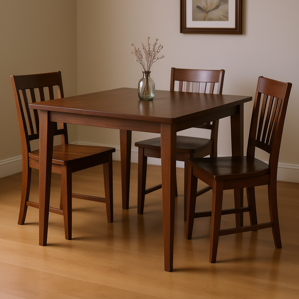 Table à manger carrée Groveland, finition noyer antique, 4 places, mobilier traditionnel pour la maison