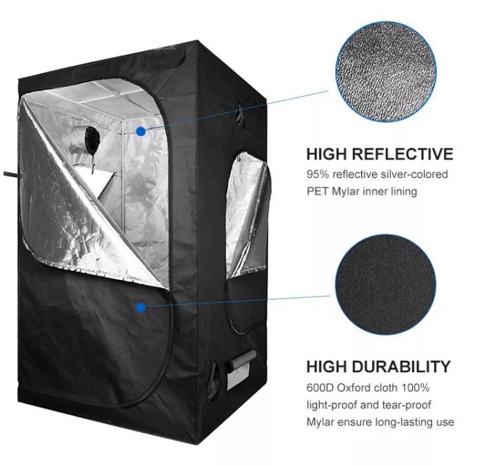 Kit de culture en boîte, toile en mylar 600D hautement réfléchissante avec fenêtre d'observation et plateau de sol, tente de culture, kit de culture, kit complet de tente de culture