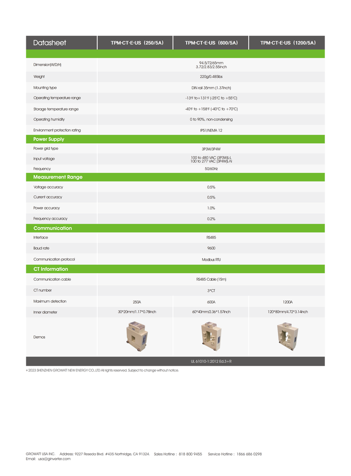 Compteur intelligent Growatt triphasé 250A TPM-CT-E avec CT compatible avec les systèmes de stockage et les onduleurs solaires Growatt