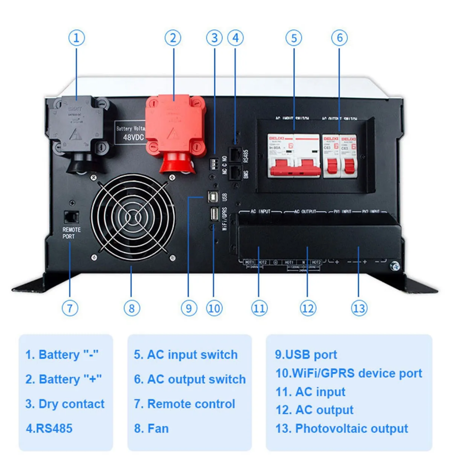 Growatt Onduleur de stockage d'énergie solaire à phase divisée Spf 3500 Es 5000Es 5Kw 6Kw 10Kw Onduleurs solaires hybrides hors réseau