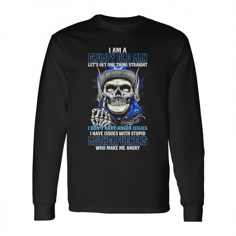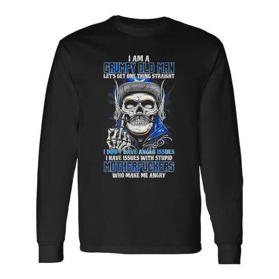T-shirt à manches longues Grumpy Old Man avec motif de crâne amusant, vêtements décontractés pour hommes