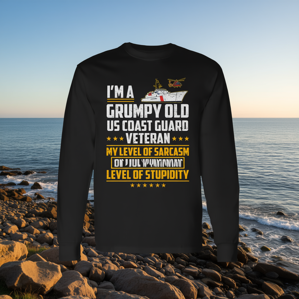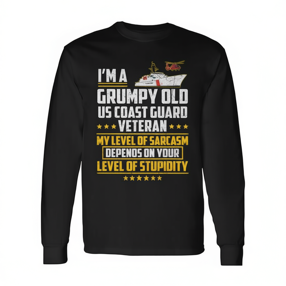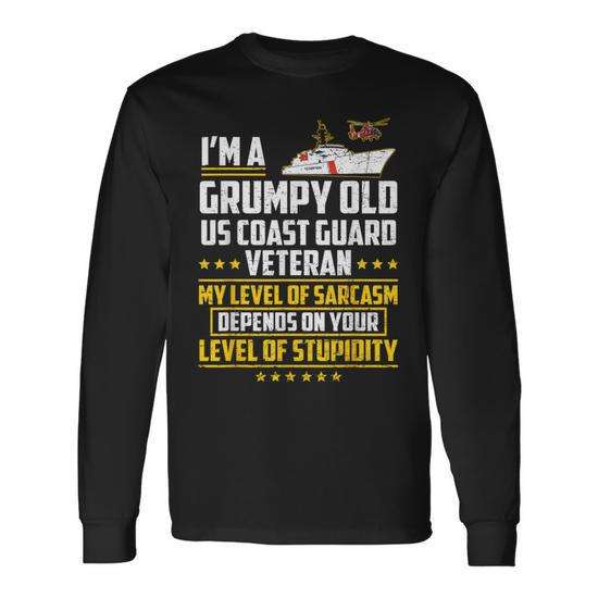 T-shirt à manches longues pour vétéran de la Garde côtière américaine, Grumpy Old Us Coast Guard Veteran, humoristique et sarcastique