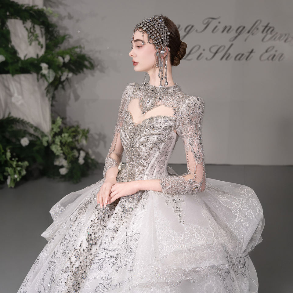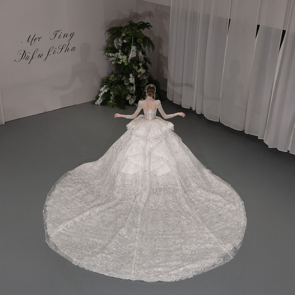 Robe de mariée moderne GT129 style robe de bal avec appliques, strass brillants et sequins, traîne chapelle, romantique et élégante