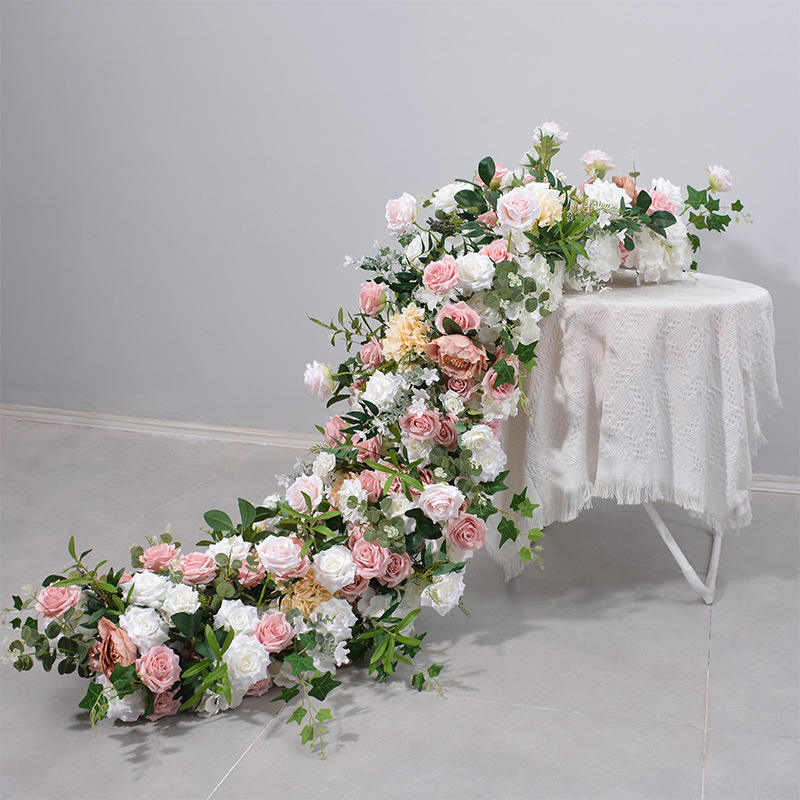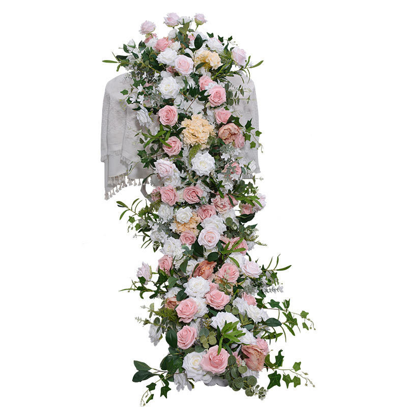 Guangqianfeng Handmade 2m Coffee Pink Flower Decorative Long Row Wedding Table Conference Arch Shelf for Graduation Meetings