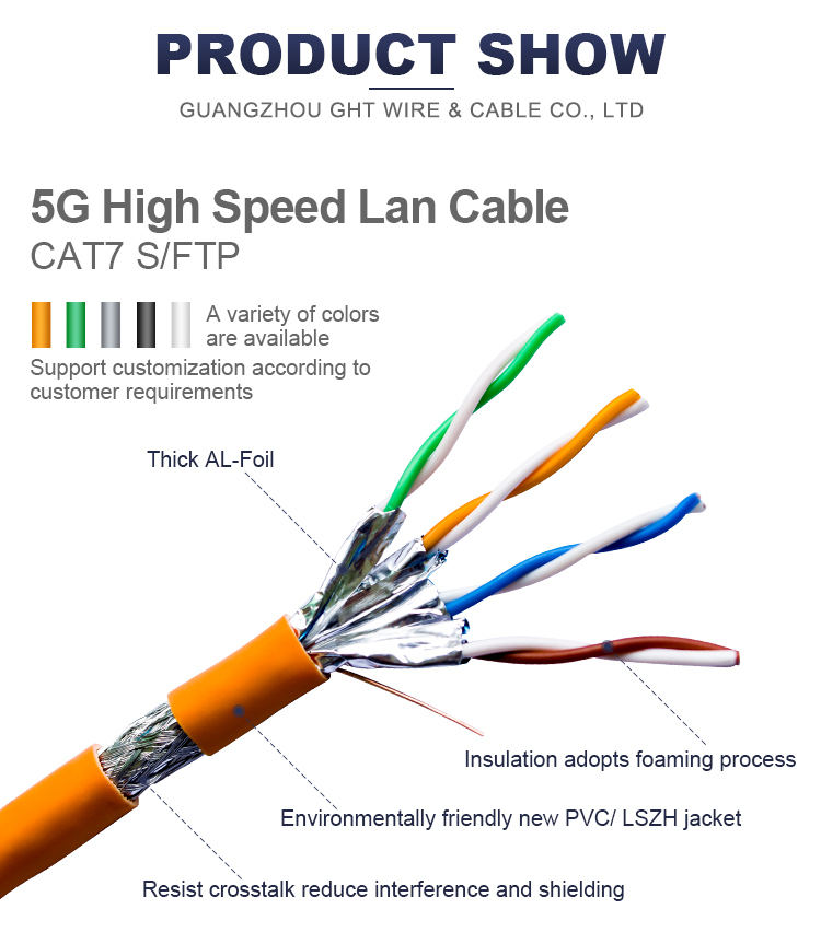 Guangzhou GHT CAT7 BC 4PR 0.58mm 0.57mm Ethernet cat7a cat7 cat8 F/FTP S/FTP câble OFC câble de communication réseau test de réussite