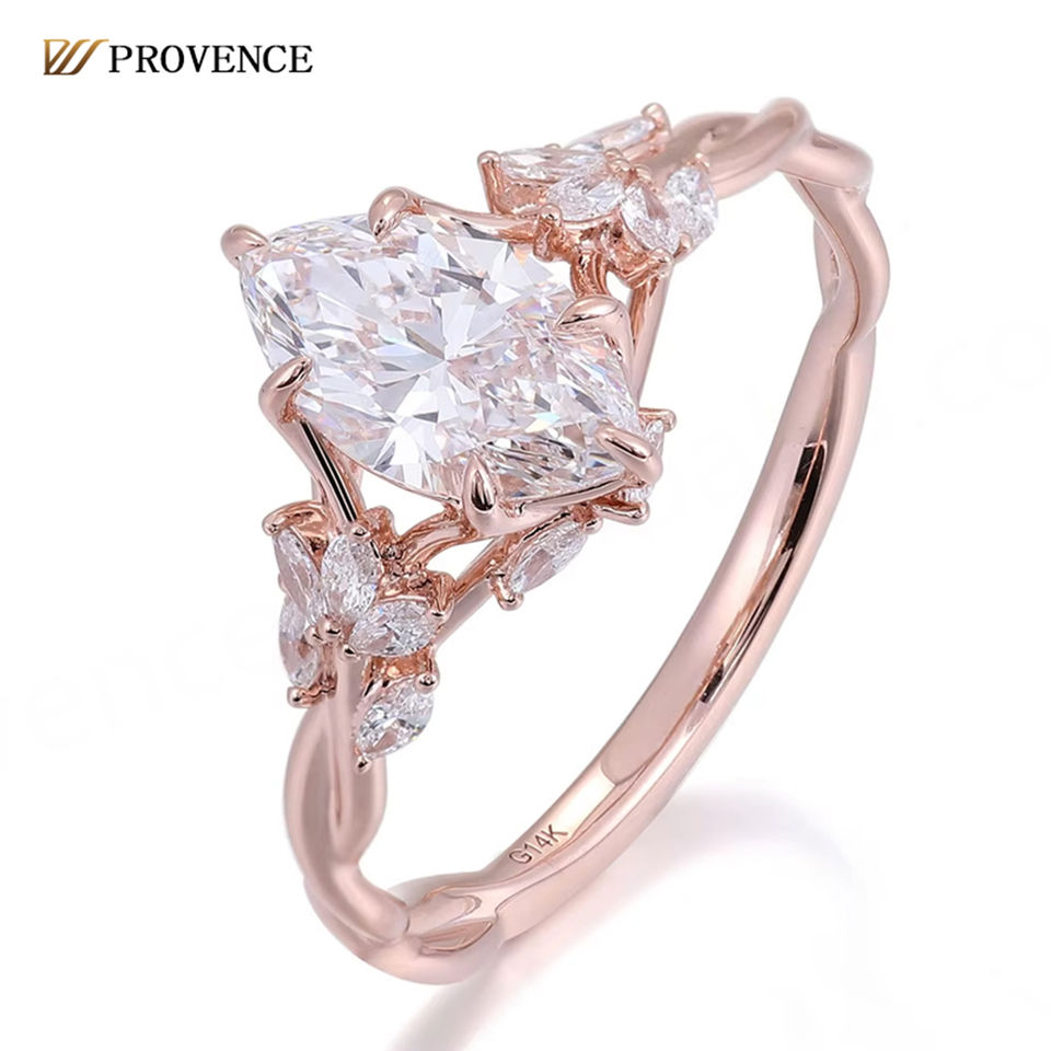 Bague personnalisée en or rose 18 carats massif de Guangzhou Provence Jewelry, pierre principale 2 carats D VVS, taille marquise, diamant de laboratoire, bague de fiançailles