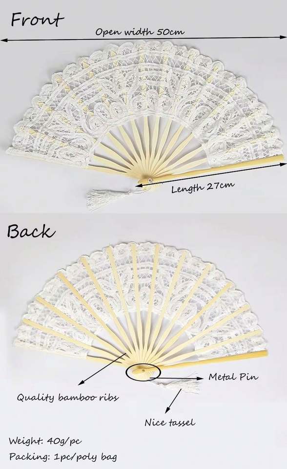 Nom du produit:Éventail pliant en bambou à main pliable en dentelle de mariée
