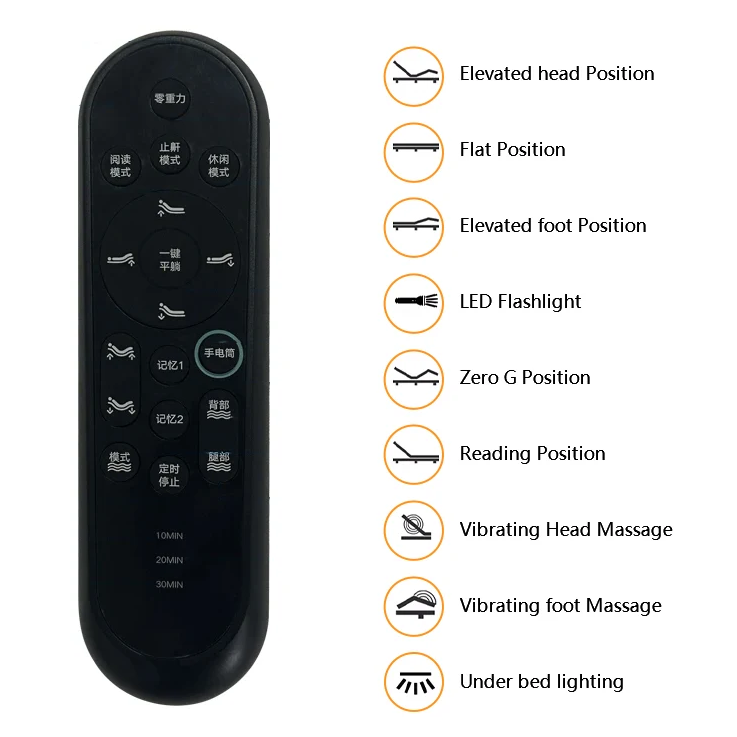 Fonction:1. Télécommande sans fil 2. Relevage de la tête/du pied