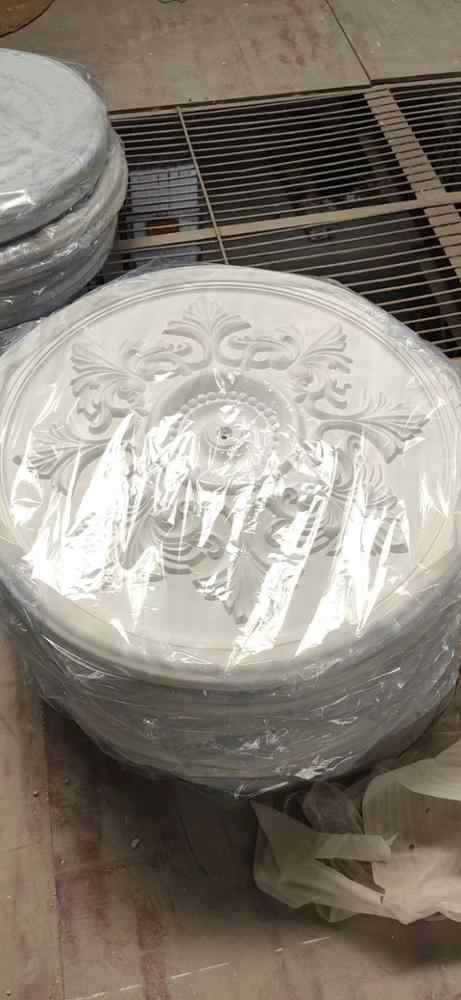 Plaque de plafond décorative ronde en PU sculpté pour salle à manger, matériaux de décoration en plâtre