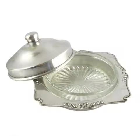 Beurrier en métal avec couvercle