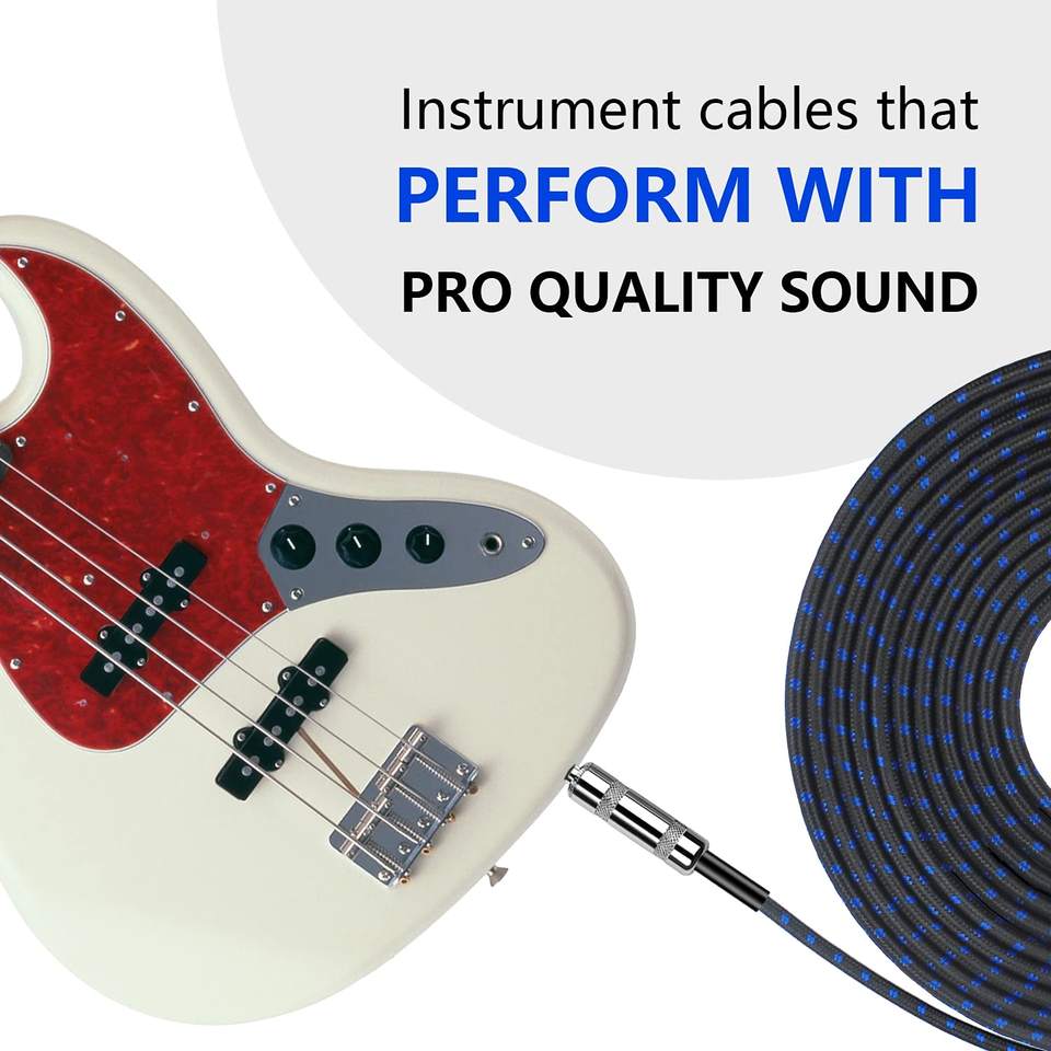 Câble de guitare 10 pieds 20 pieds Câble d'instrument électrique Câble d'ampli pour guitare électrique Basse Guitare électrique Mandoline Audio professionnel