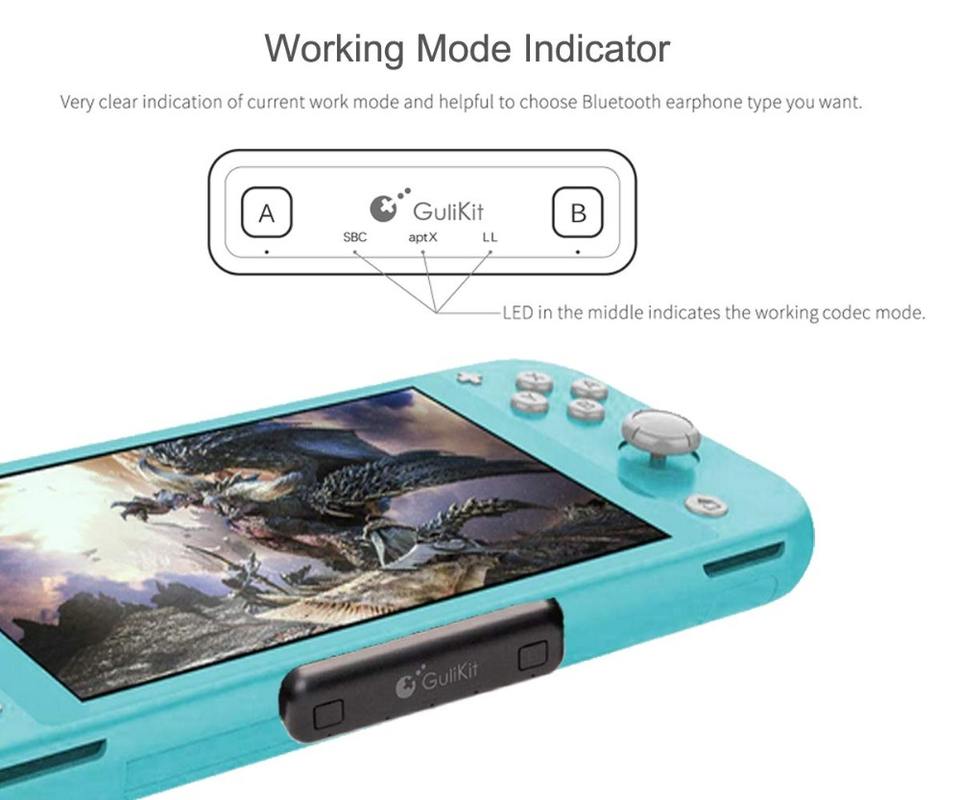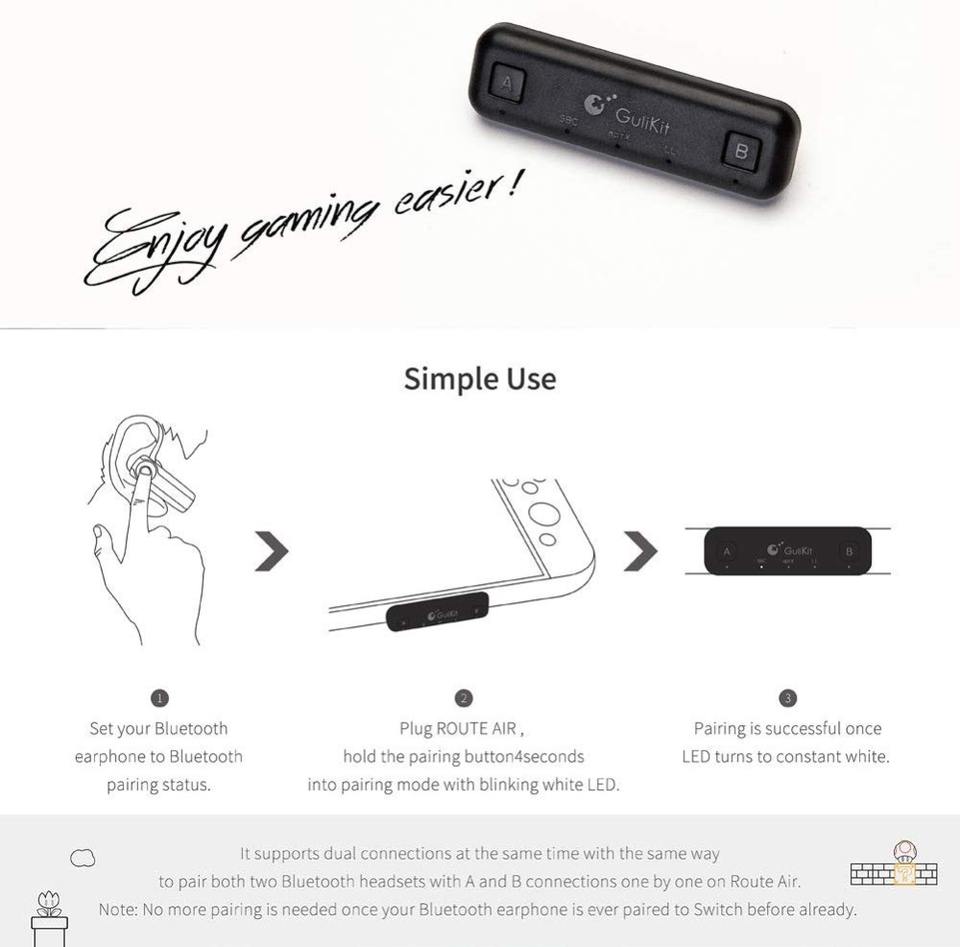 Adaptateur récepteur GuliKit NS07 Air BT, émetteur audio sans fil, batterie externe, compatible avec Switch/Switch Lite/PS4