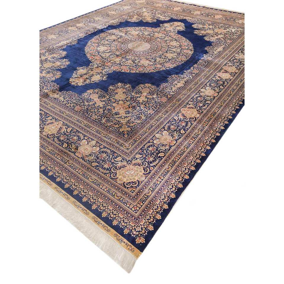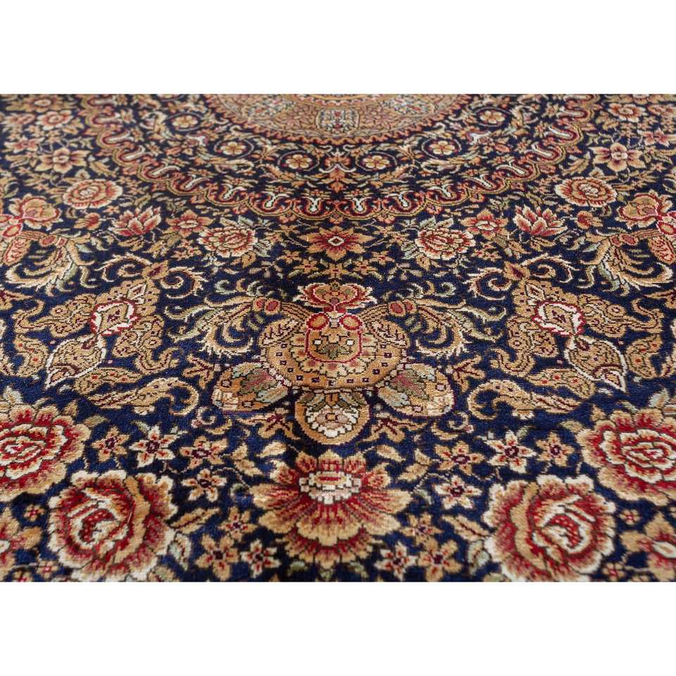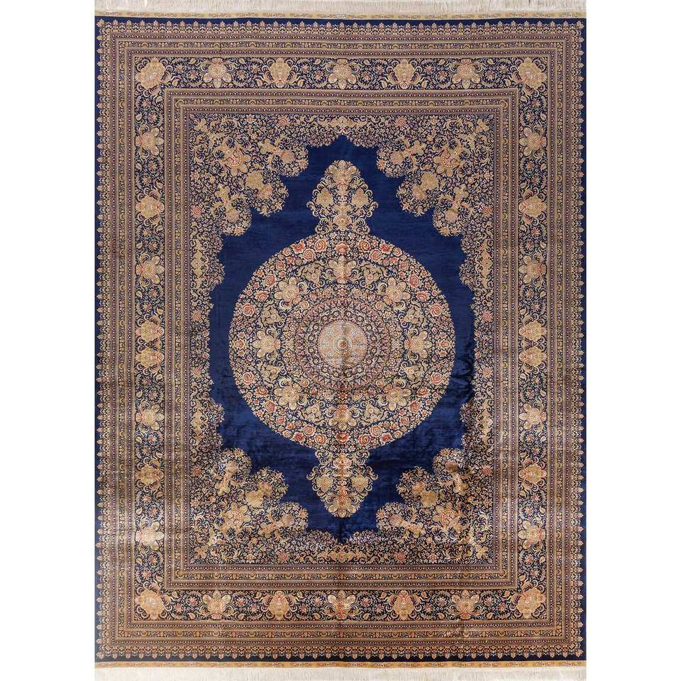 Gulmarg Blue Hand Knotted Silk Rug with Medallion Pattern for Home Use-Pae-6383