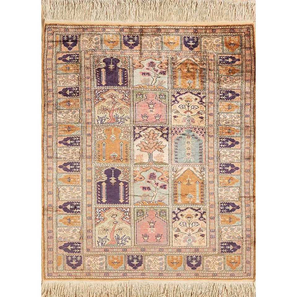 Tapis en soie noué à la main Gulmarg Gold Pae-4744, classique, épaisseur 10 mm, design rectangulaire patchwork pour la maison, l'entrée et la chambre