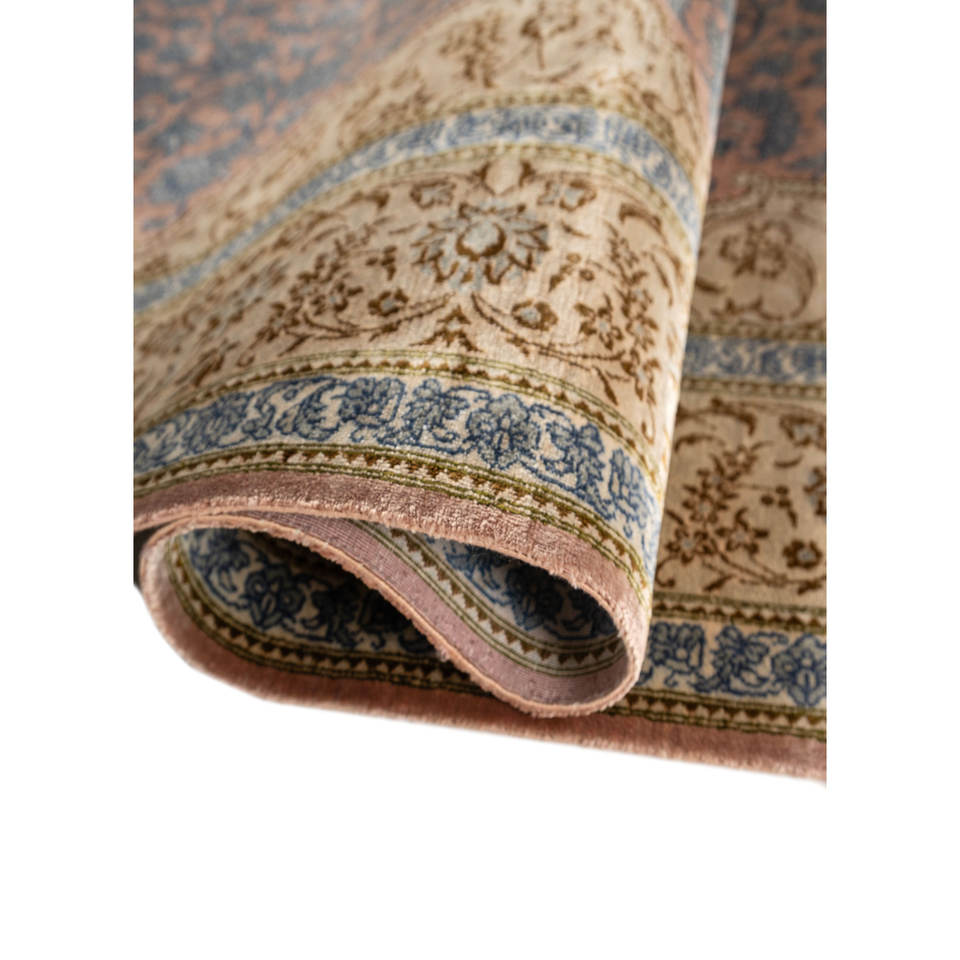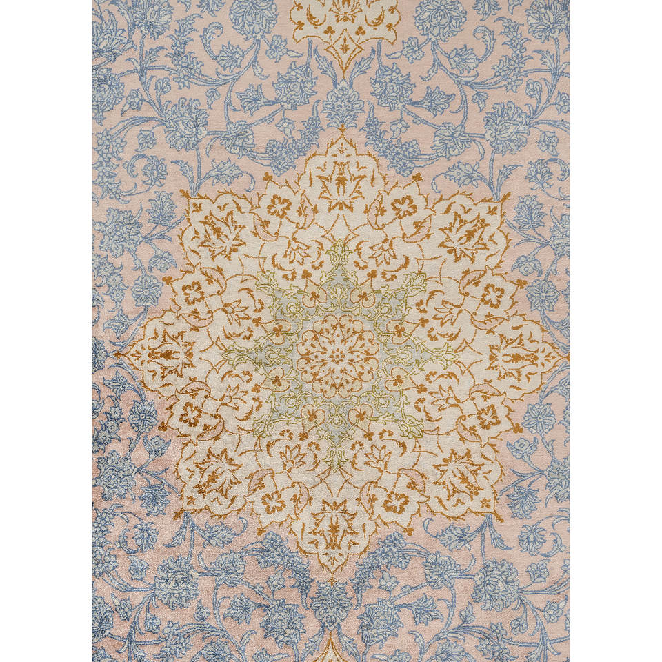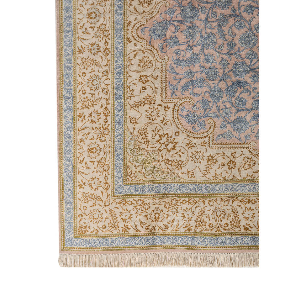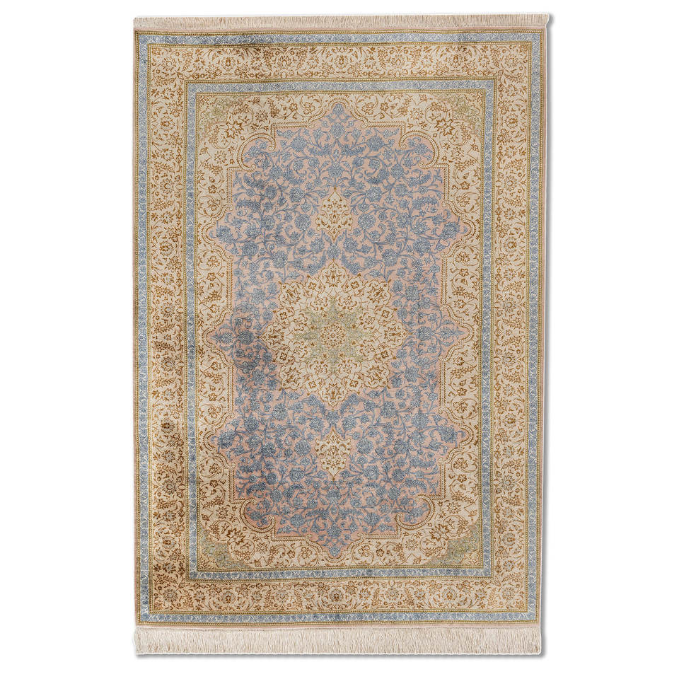 Tapis en soie noués à la main Gulmarg Ivory pour la maison - Motif médaillon rectangulaire en viscose pour adolescents, idéal pour salon et couloir