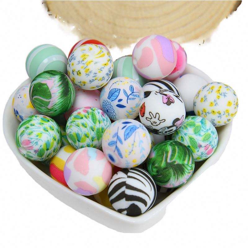 Perles en silicone de 15 mm pour chaîne de sucette DIY, sélection rigoureuse, transfert d'eau, vente en gros