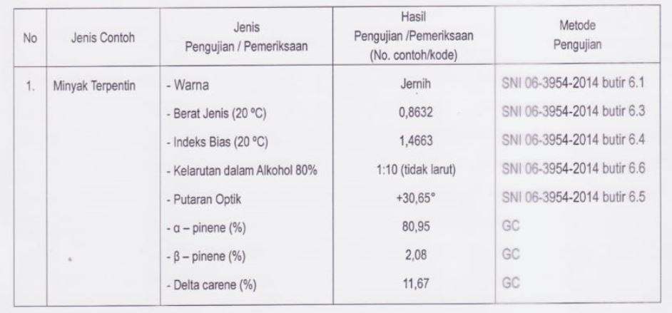 Huile de térébenthine de gommeSpécification