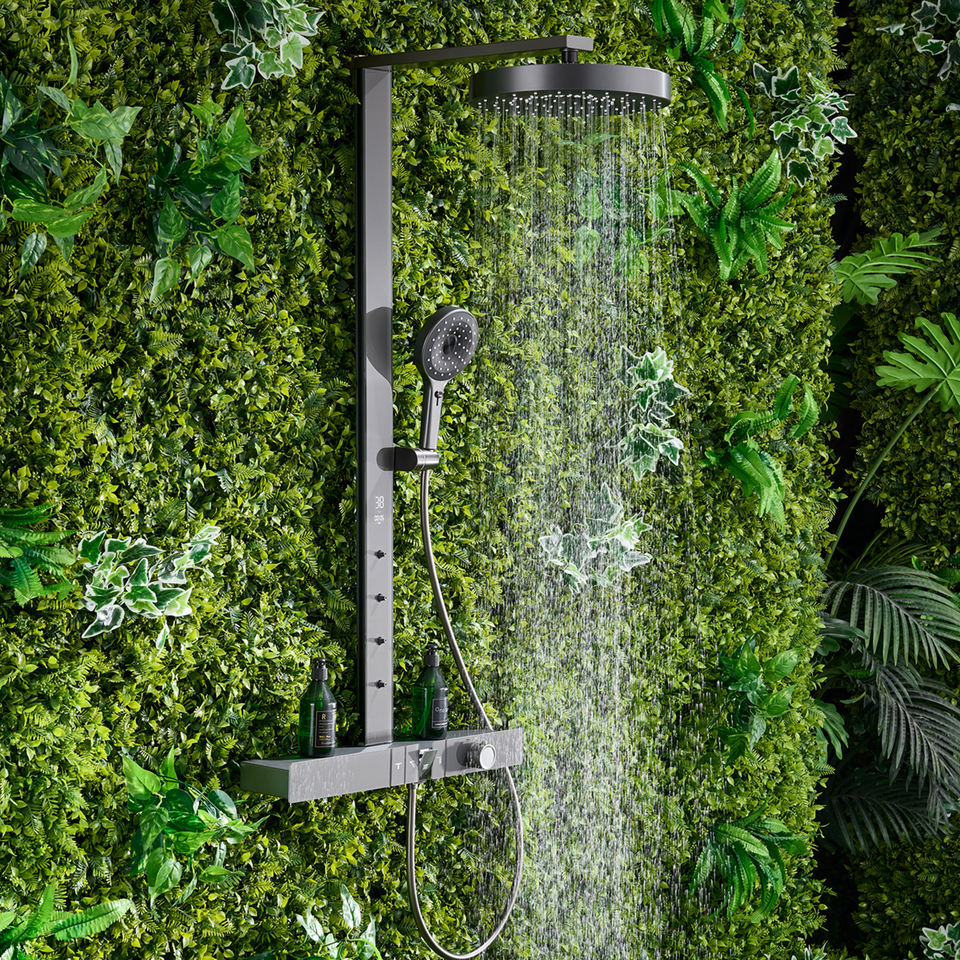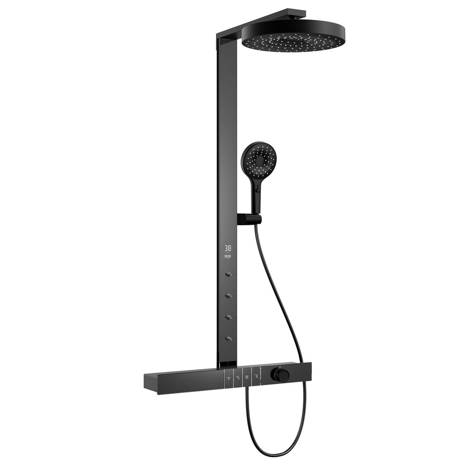 Couleur gris pistolet Tuyau de douche carré à 4 fonctions Affichage numérique Thermostat tempéré Ensemble de robinet de douche piano