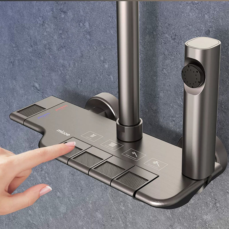 Dispositif exposé de robinet de douche:Avec barre coulissante
