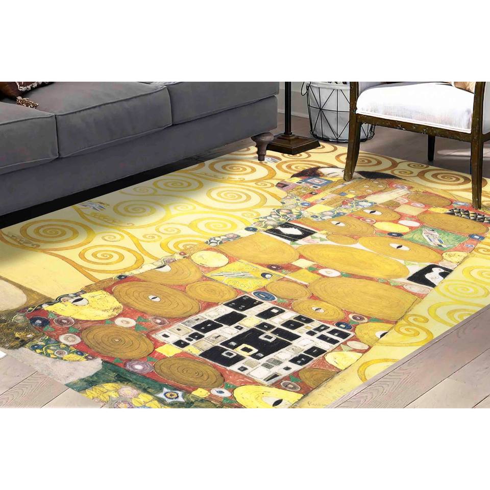 Tapis Gustav Klimt 'Le baiser' : reproduction artistique antidérapante, tapis en chenille