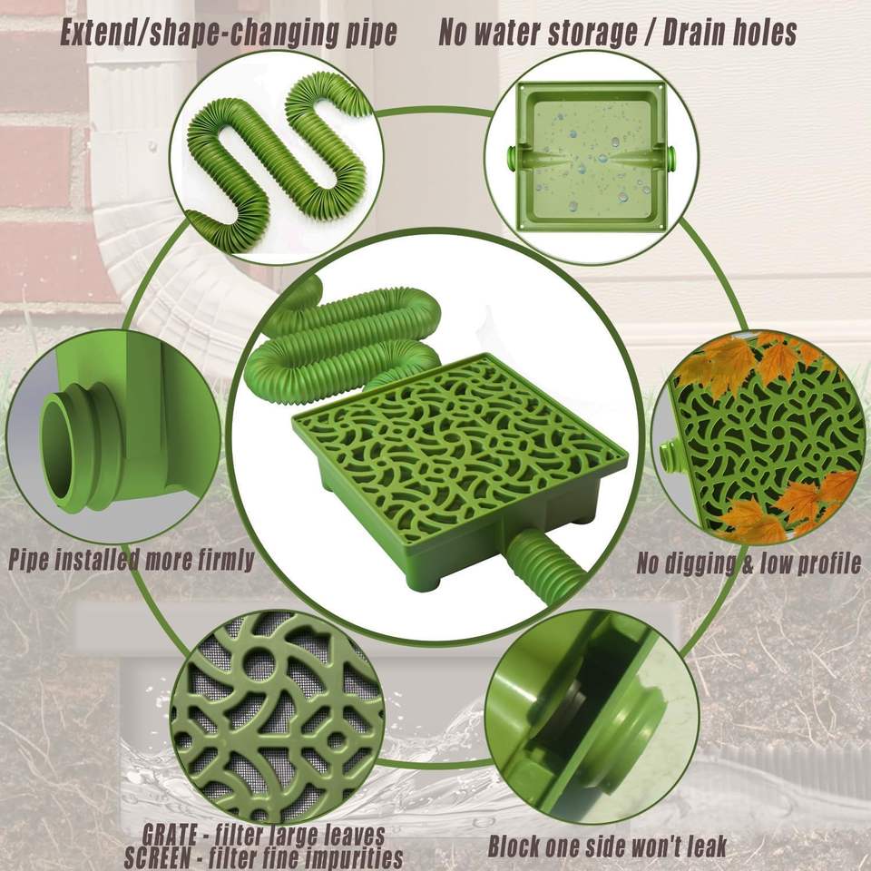 Extensions de tuyau de descente de gouttière Big Kit Catch Basin avec 2pcs Pipe bathroom sink Downspout Extender 2 Pipes can Connected in Whole