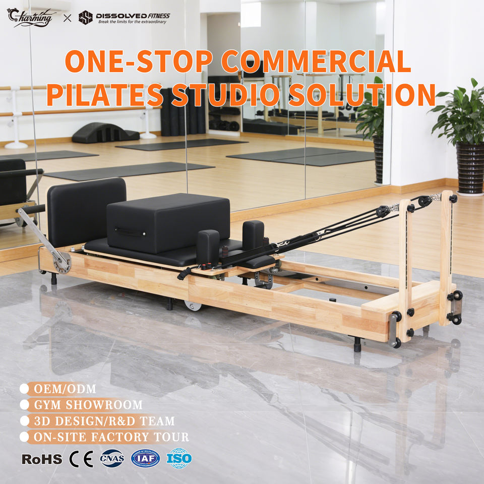 Appareil de Pilates Reformer Professionnel Pliable en Bois de Qualité Studio pour Entraînement de Fitness et Exercices de Gymnastique
