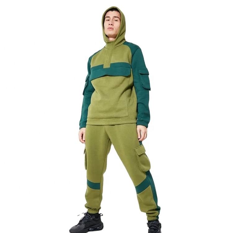 Ensemble de survêtement deux pièces pour homme, en molleton technique uni à capuche, séchage rapide et respirant, idéal pour le printemps