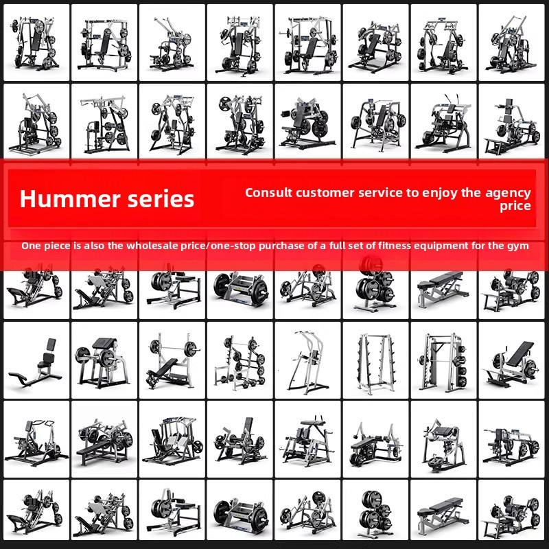 Ensemble complet d'équipements de musculation en acier Hummer : Banc de musculation, Rameur à câbles haut et bas, Extension de cuisses, Squat, Entraînement de force