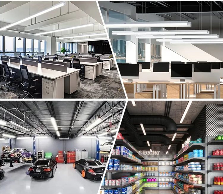 Plafond d'éclairage de salle de sport 8FT 3 CCT 40W 60W 120W Lampe linéaire à LED Plafond suspendu Lumière linéaire moderne pour atelier bureau