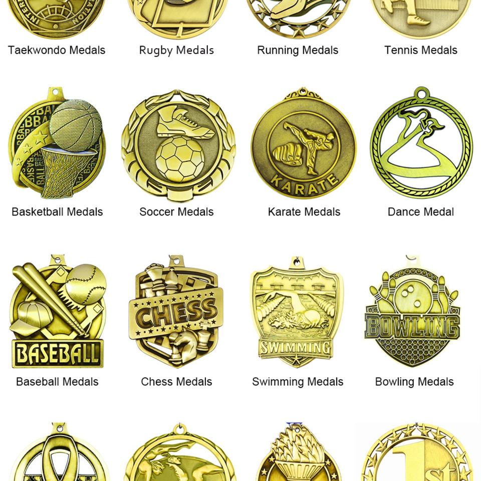 Trophées et médailles sportives en alliage de zinc avec logo doré pour gymnastique, Muay Thai, baseball, judo, football, taekwondo, musculation et événements de remise de diplômes