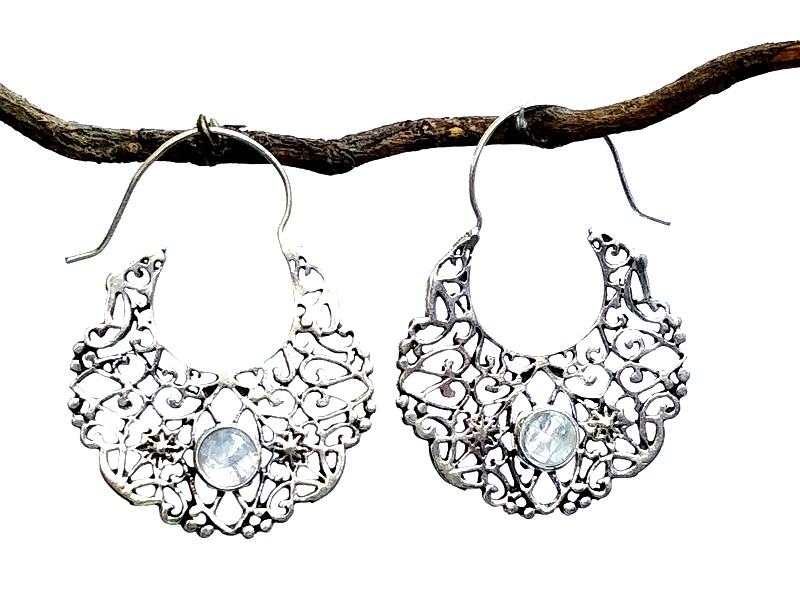 Gypsy indien pierre naturelle bijoux couleur argent formé fabriqué à la main argent plaqué pierre de lune boucle d'oreille