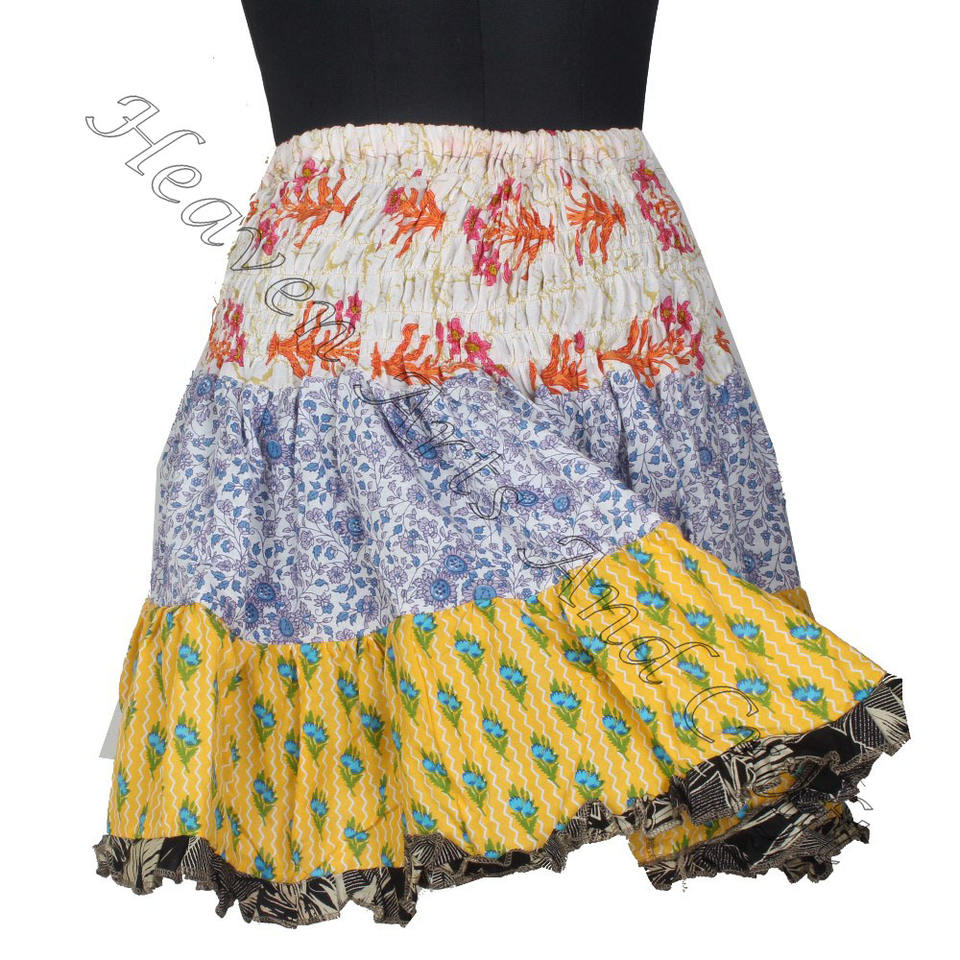 Mots-clés:Mini-jupe en coton vintage avec patchs sari