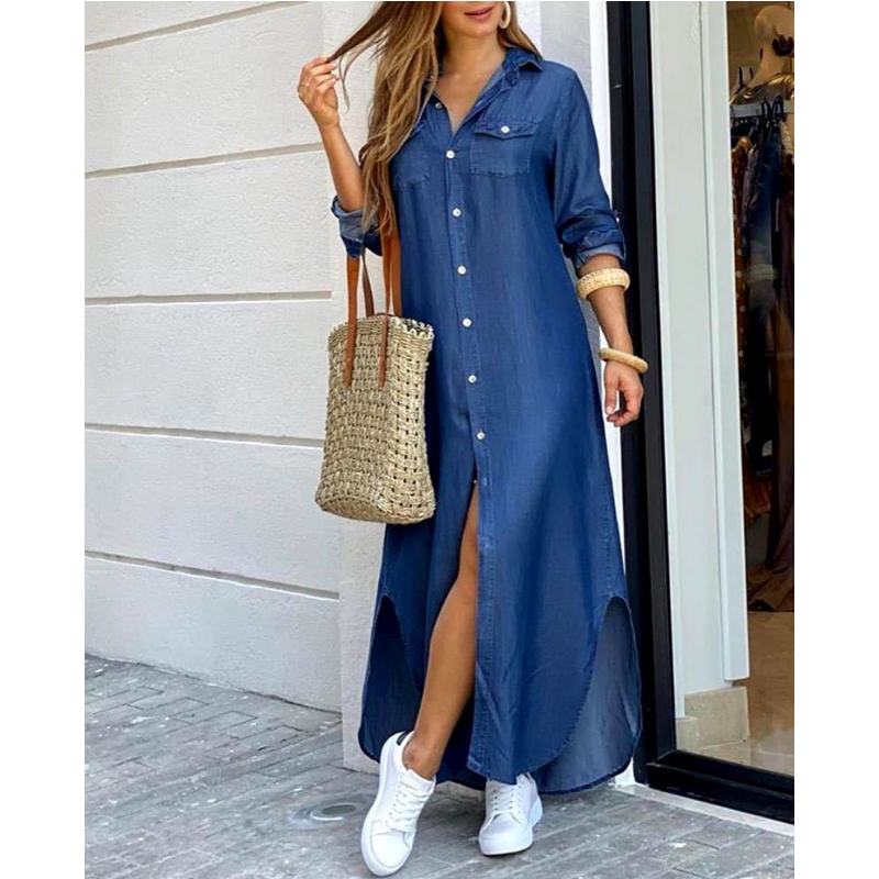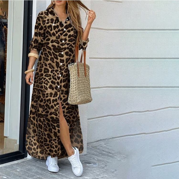Nouvelle Robe Chemise Femme H-1076 Automne Printemps Manches Longues Boutonnage Simple Imprimé Tendance Décontractée Grande Taille