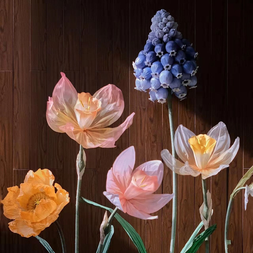 Ensemble de fleurs H-151, papier crépon autoportant, grand coquelicot pour la décoration de fenêtres, ensemble floral pour mariage, fête, présentoir de magasin