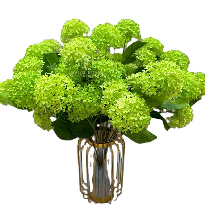 H-367solid non-effondrement 3 têtes en plastique hortensia fleurs Faux boule verte maison mariage décor hortensia artificiel géranium Bush