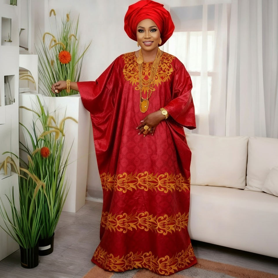 Robe africaine traditionnelle H&D 2026, nouveau style, broderie personnalisée, robe bazin décontractée, robe boubou avec foulard