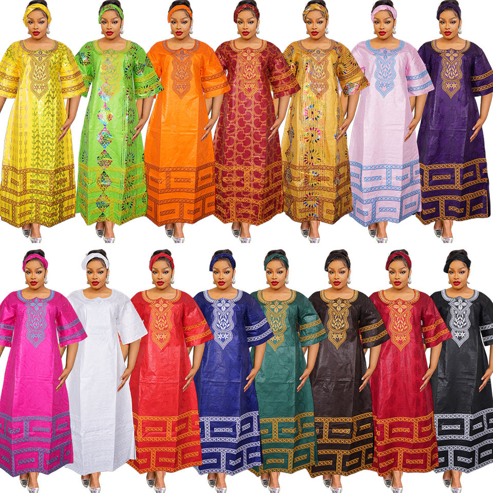 H & D Custom African Bazin Riche Embroidery Boubou Design for High Quality Fashion Women's Dress Robe With Scarf