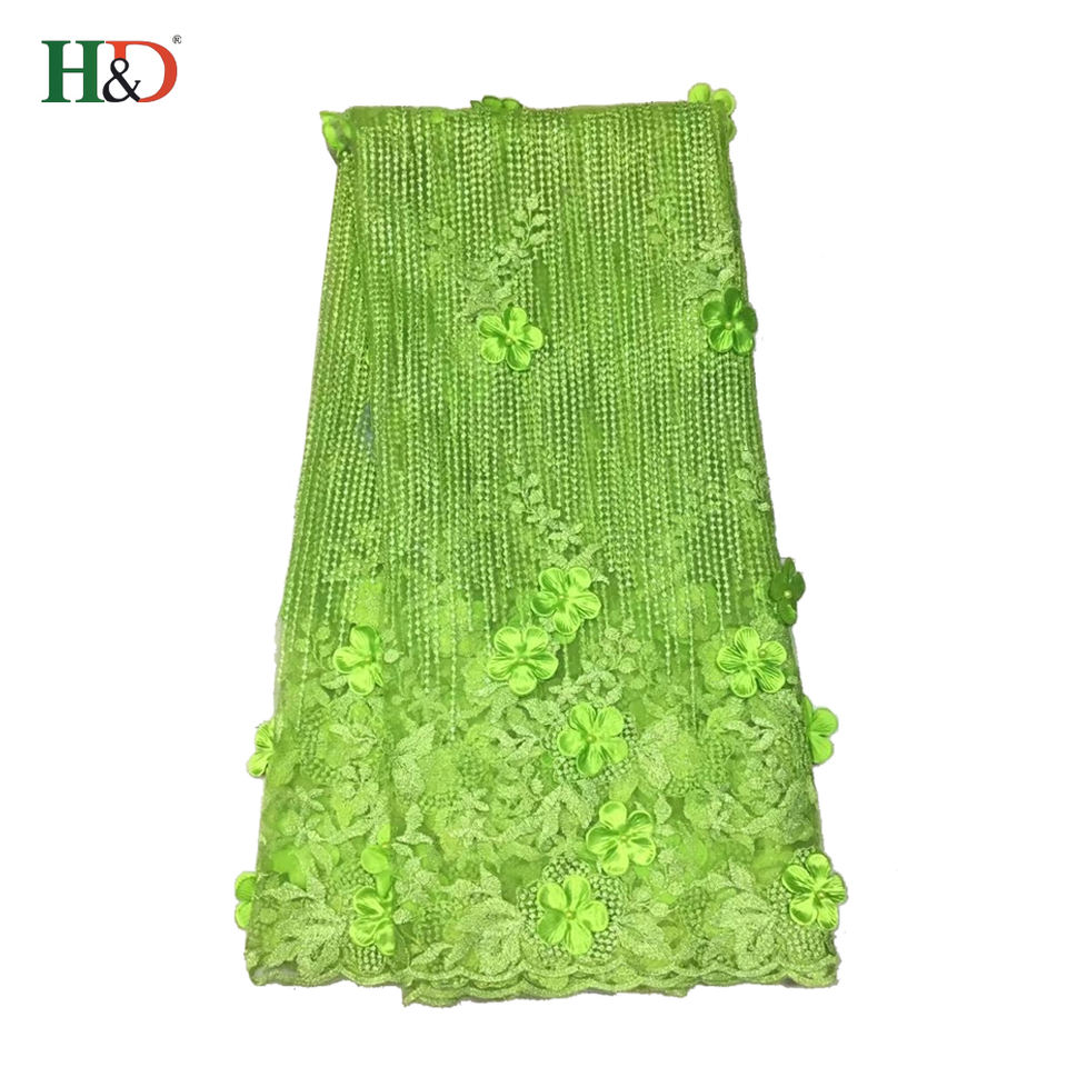 H & D Meilleur Prix Nail Perle Broderie Belle Coloré Suisse Or Tissu Jaune Africain Dentelle