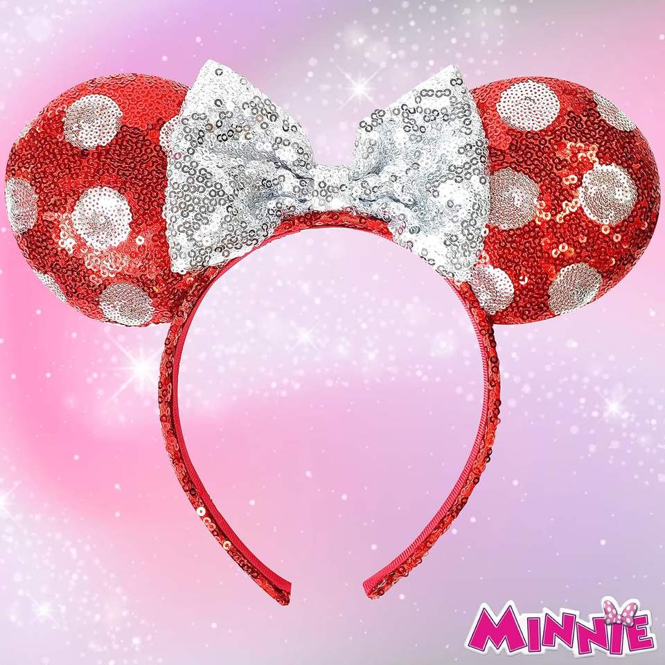 Serre-tête Disney Mickey Minnie Mouse avec oreilles, nœud et sequins à pois, design officiel, ajustable, taille universelle pour enfants