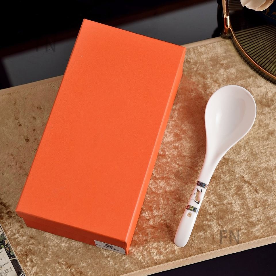 Cuillère à riz en porcelaine fine de haute qualité H Home avec long manche, finition miroir, non toxique et jetable pour la cuisine