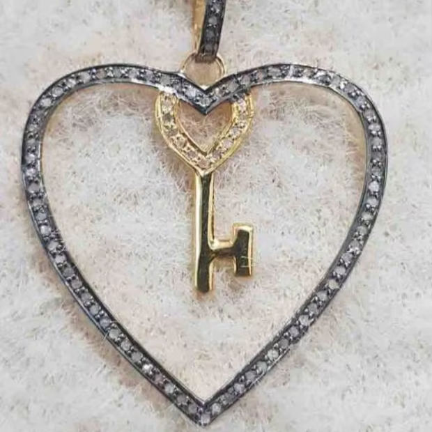 name or words:Heart 925 Sterling Silver Pave Diamond Pendant